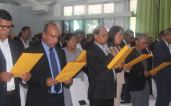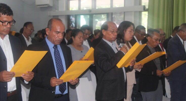 Komisáriu Planeamentu Forsa Traballu husi Komisaun Funsaun Públika (KFP), José Telo Soares Cristovão, partisipa iha serimónia Tomada de Posse ba kargus xefias iha Ministériu Agrikultura, Pekuária, Peskas no Floresta (MAPPF), …