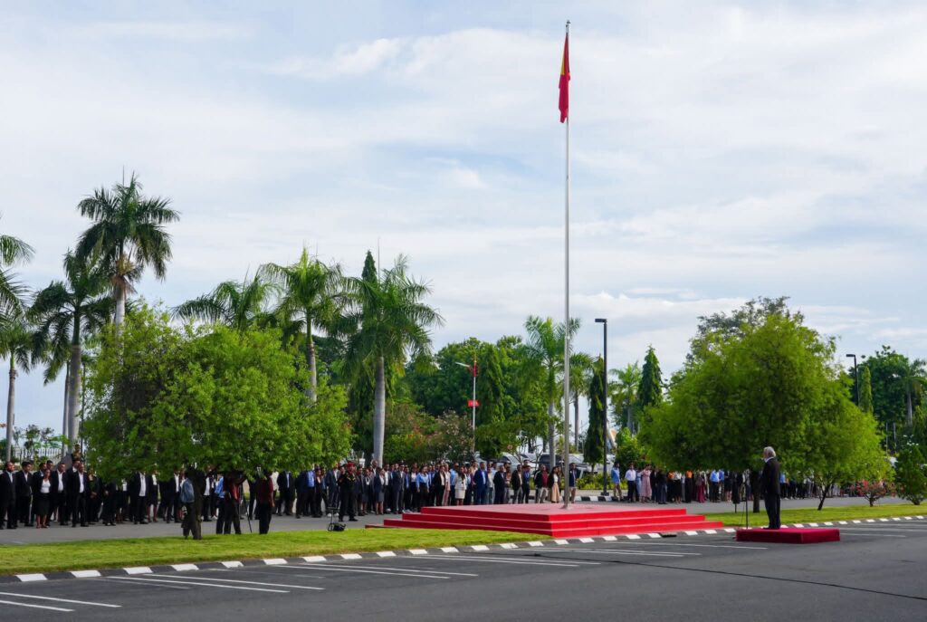 Primeiru-Ministru, Kay Rala Xanana Gusmão, hato’o mensajen ne’e wainhira sai Inspetór ba serimónia isar bandeira iha primeiru semana fulan-Janeiru tinan 2026, iha Palásiu Governu.