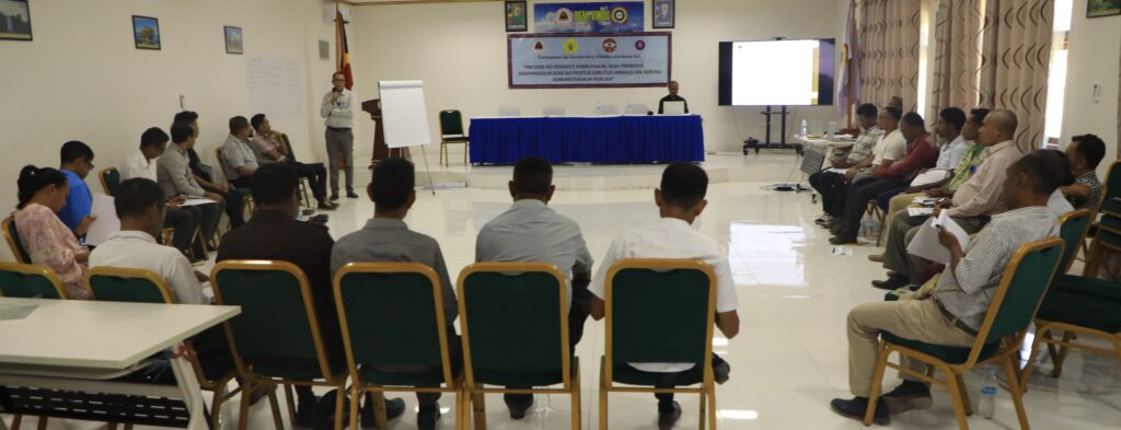Komisáriu Portfólio ba Asuntu Disiplinár, Agapito da Conceição, no Diretór Nasionál Planeamentu Kuadru Pesoál Funsaun Públika (DNPQPFP), Fransisco da Costa Pereira, sai oradór hodi ko’alia kona-ba “Promove Integridade Funsionáriu Públiku ba Jestaun Efisiénsia no Efikasia Rekursu Estadu no Direitu no Devér Funsionáriu Públiku (Estatutu Funsaun Públika Lei númeru 8/2004 altera ba Lei númeru 5/2009)”. Formasaun ba Funsionáriu kargu diresaun no xefia sira iha Autoridade Administrativa Ataúro ho tema “Prevene no Kombate Korupsaun hodi Promove Governasaun Di’ak no Proteje Direitus Umanu iha Administrasaun Públika iha Timor – Leste”, ne’ebé hala’o iha salaun enkontru Autoridade Administrativu Ataúro, Beloi – Ataúro.