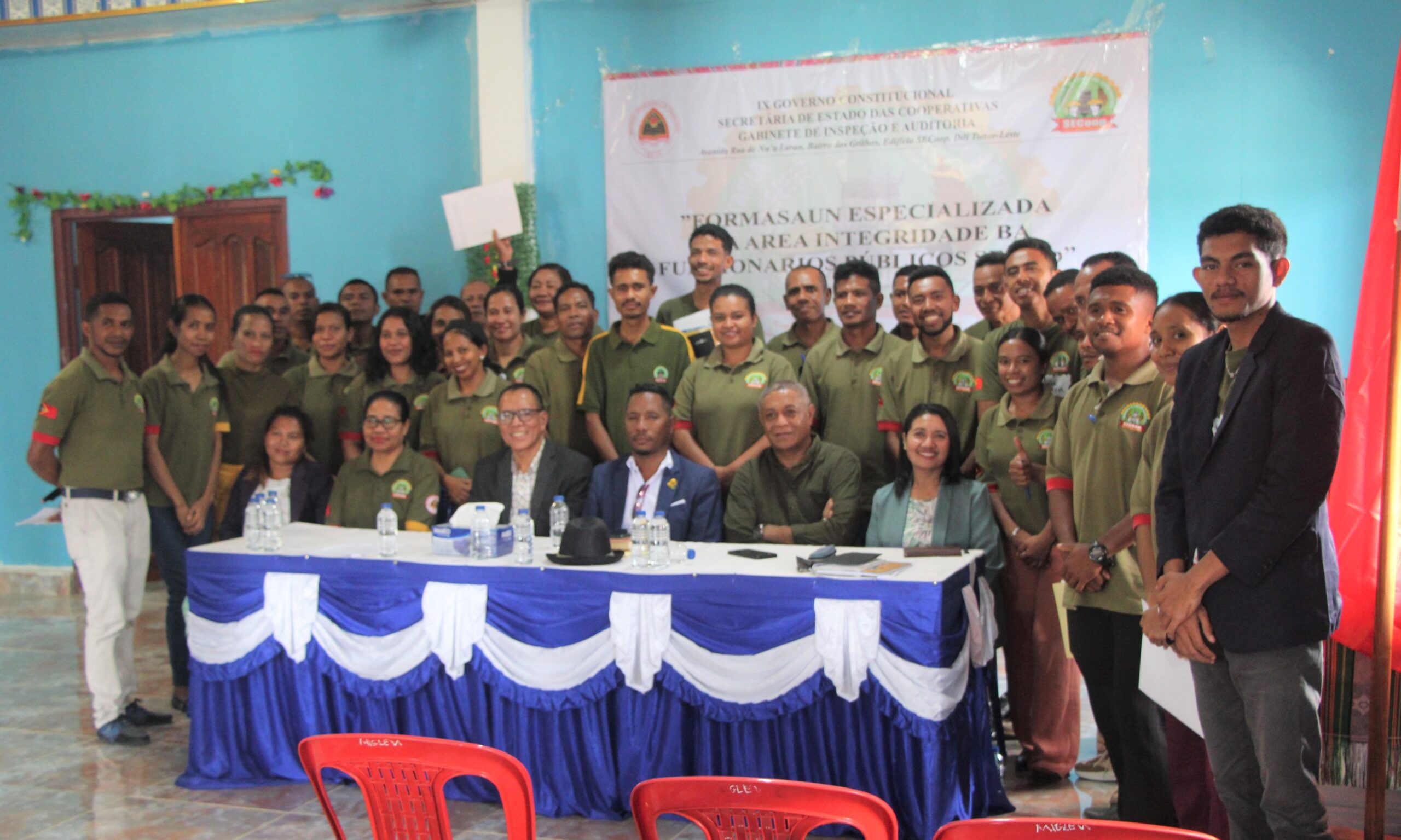 Aileu, 21 Novembru 2025 – Komisáriu Portfóliu Disiplinár, Agapito da Conceição, hamutuk ho Inspetora Sonia da Silva Soares fó Formasaun Espesializada iha área Integridade ba Funsionáriu Públiku hosi Servisu Eskola Kooperativa (SECoop) iha munisípiu Aileu, ba funsionárius na’in 41 (Feto 17, Mane 24).